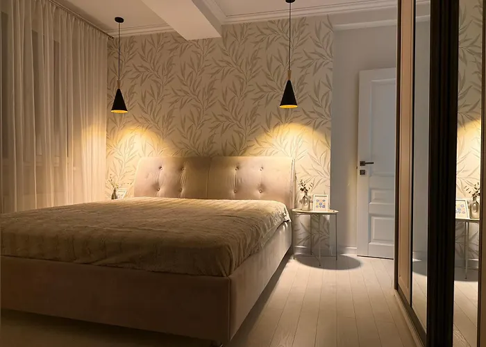Luxury Suite Near City Center Chişinău est situé à environ 10 minutes en voiture du Monument Étienne le Grand et à environ 2 km de la cathédrale de la Divine Providence. La résidence spacieuse dispose d'un Wi-Fi dans tout l'établissement.